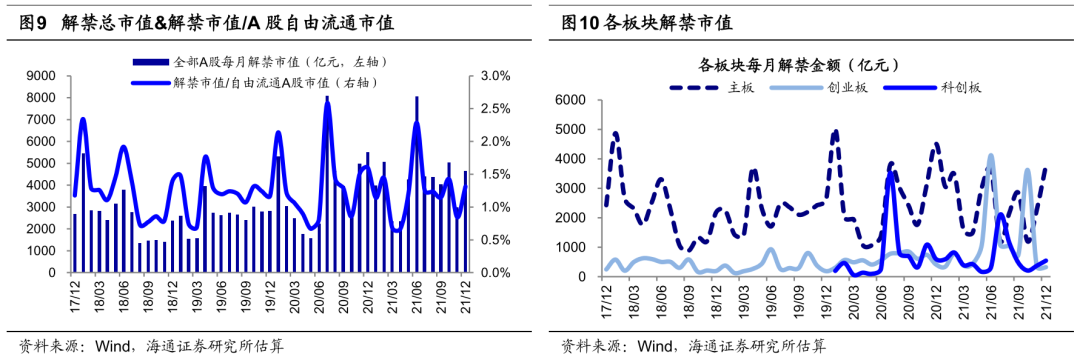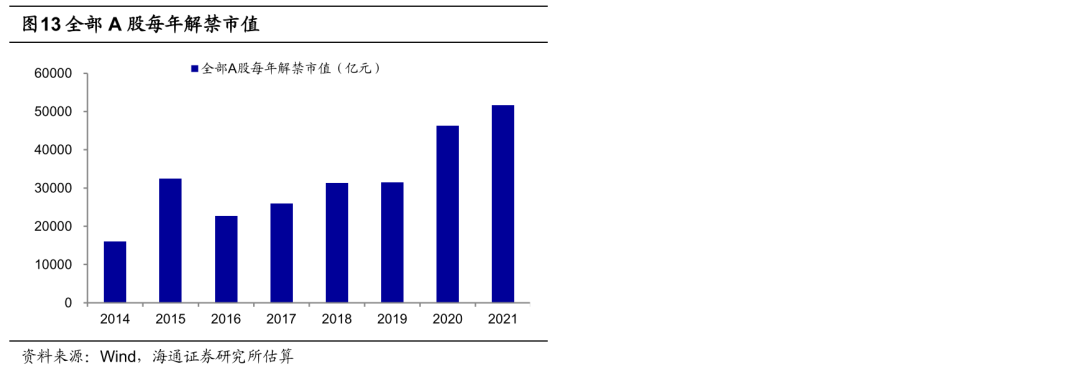 以史为鉴,A股大量解禁对市场影响有限。从A股历史上的解禁减持对市场的影响来看,产业资本持有A股到期解禁的高峰期对行情的影响是有限的。我们认为原因有二:第一,解禁额并不代表产业资本减持额,还要考虑限售股解禁后减持的约束比例及市场行情对产业资本增减持的影响。全部A股在减持新规实施以来和2020年全年的净减持额/解禁市值均值分别在5%和10%左右,实际减持占解禁额的比例较小。第二,减持额大小与短期涨跌关系不大。参照上文,长期来看产业资本增减持额可作为判断市场大拐点的信号,而短期来看产业资本波动较频繁,对市场行情并没有很大影响。以2019年行情为例,3月和9月产业资本分别净减持约239亿元和565亿元,而上证综指在3月和9月的涨跌幅分别为5.1%和0.7%,并未出现明显下跌,反而上涨;而在减持额仅为19亿元左右的5月,上证综指大跌5.8%。