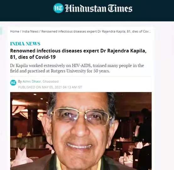 即使是注射了2针辉瑞新冠疫苗的传染病专家,也未能幸免于难。据《印度斯坦时报》5月5日报道,美国印度裔传染病专家拉贾德拉·卡皮拉在注射了2针辉瑞新冠疫苗的情况下,前往印度探亲,但在抵达印度后不久,便感染了新冠病毒,最终81岁的他不幸离世。
