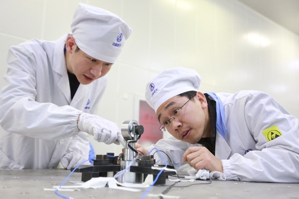 △中国航天科技集团公司的青年科研人员在做产品试验。