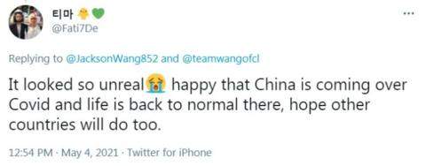 网友Fati7De则在看到中国举办音乐节的消息时说:“画面看起来好不真实。很高兴中国控制了疫情,生活也逐渐恢复正常,希望其他国家能这样。”