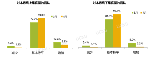 调查显示,4月份线上集客量有所增加、线下集客量基本持平。其中认为线上集客量“增加”的二手车经理人比例为9.9%“减少”的比例为1.1%;认为线下集客量“增加”的经理人比例为2.2%,“减少”的比例为1.1%。