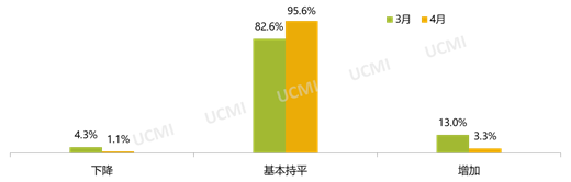 谈及对下月的预期,二手车经理人表示:随着4月份市场需求有所增加,持续释放出二手车市场回暖的信号。但进入到5月份后,全国大部分地区开始进入夏季,预计客流和成交在5月下旬将有所减少,应优先处理库存,收拢库存占用的资金,确保6、7月份淡季期能够平稳度过,对5月份二手车经营情况继续看好。