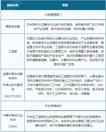 国家工业和信息化部负责制定并实施关于电子元器件行业的政策与规划,对产业布局与产业发展方向进行宏观调控,推进产业结构战略性调整和优化升级,起草相关法律法规草案,制定规章,拟订行业技术规范和标准并组织实施,指导行业质量管理工作。