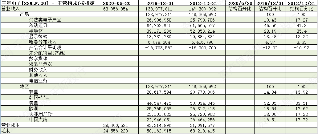 (1) 三星电子[SSNLF.OO]有限公司是一家主要从事电子产品的生产和销售业务的韩国公司。该公司通过三个业务部门开展业务。消费电子(CE)部门主要从事彩色电视(CTV)、显示器、打印机、空调、冰箱和洗衣机等的生产业务。信息技术与移动通信(IM)部门主要从事电脑、手持电话(HHP)、网络系统和数码相机等的制造业务。器件解决方案部门主要从事半导体和显示器件(包括动态随机存取存储器(DRAM)、闪光灯和薄膜晶体管液晶显示器(TFT-LCD)等)的制造业务。该公司在国内及海外市场销售其产品。