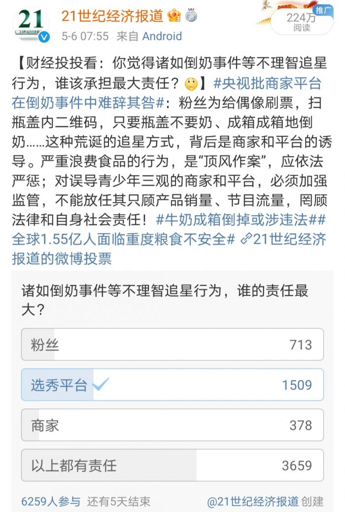 资本收割至此,以至于有网友犀利吐槽:“现在选秀选出来的是金钱资本王,不是真正的人气王,想出买奶投票的人真是个圈钱天才。”