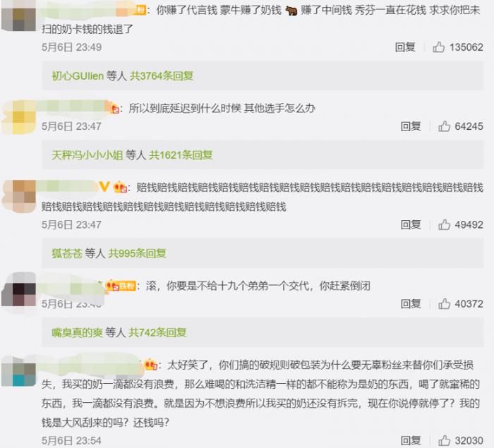 而在爱奇艺和真果粒致歉微博的评论区,还涌入数以万计的粉丝,他们的诉求主要在要求退钱、给选手交代两大方面。截至发稿,两者仍未给出这两个关键问题的解决方案。