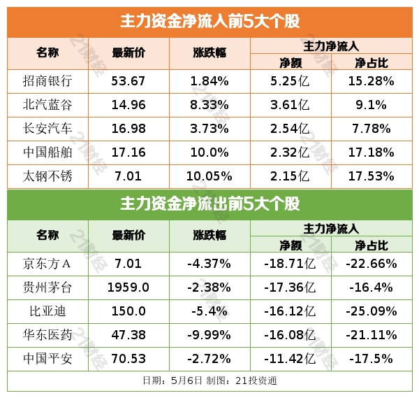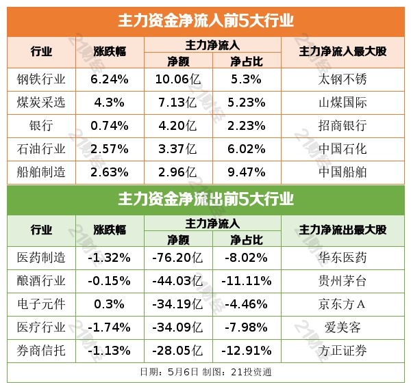 5月6日,北向资金净买入1.84亿元,其中沪股通净买入5.83亿元,深股通净卖出3.99亿元。增持银行,减持医药制造。