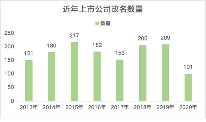 近年来,国内改名换姓的上市公司不在少数。公开统计显示,从2013年到2020年,国内更名的公司已累计达1399家。