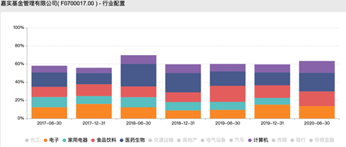 透过现象看本质,在中国市场长期投资机遇与价值方面嘉实基金一直在把研究做到最深,从未停止思考的脚步。截至2020年末,以申万28个一级行业为标准,嘉实基金持有的前四大行业为医药生物、食品饮料、计算机、电子,持有市值分别为250亿元、208亿元、176亿元、155亿元,占股票投资市值分别达到12.36%、10.27%、8.68%、7.65%,合计占比近40%。值得一提的是,嘉实在电子、计算机、医药生物、食品饮料四个行业已经连续四年相对股票市场标准行业配置比例实现超配,合计占比超过40%。