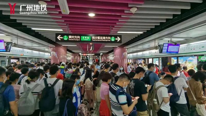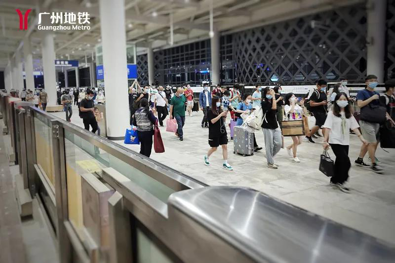 当天,不仅总客流创了新高,另外两项数据也创下开通以来客流新纪录,一是广州东环城际发送人数,较原纪录2021年4月3日6250人次提高了564人次;二是使用广州地铁APP乘车码、普通羊城通、岭南通以及全国交通一卡通等公交化支付系统的人数达8456人,占总客流达42%。