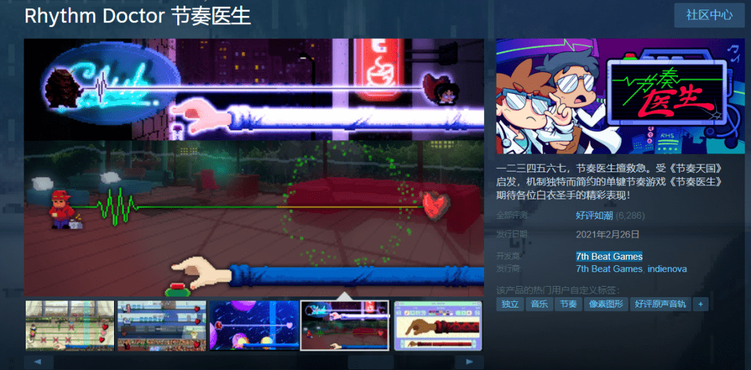 这款游戏叫做《冰与火之舞》,它的开发商于今年2月再次推出了一款引发玩家讨论的节奏游戏——《节奏医生》。短短一个月,《节奏医生》就拥有了超6000的玩家评论,且98%都为好评,可以说传播态势比前两年的《冰与火之舞》更热。