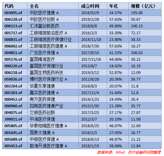 以下是成立时间超过2年,规模超过10亿,年化超过20%的医药医疗题材的主动管理型基金,可供大家参考: