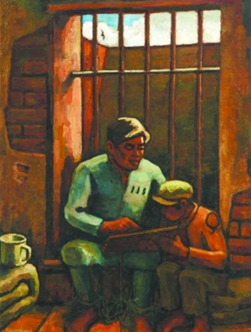 1981年正值建党六十周年,为了纪念中国共产党的杰出领导人邓中夏烈士,胡一川专门创作了《铁窗下》这幅油画。