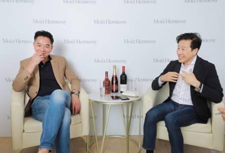 路威酩轩(LVMH)集团大中华区总裁吴越(右)、酩悦轩尼诗帝亚吉欧中国区总裁吴鹏凯(左)共同接受采访 图源:酩悦轩尼诗