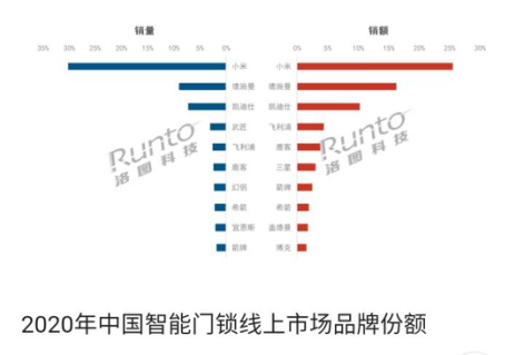 第三类是跨界品牌,如三星、美的、海尔、小米等也都在积极布局智能门锁细分市场,并且取得了较好的业绩。