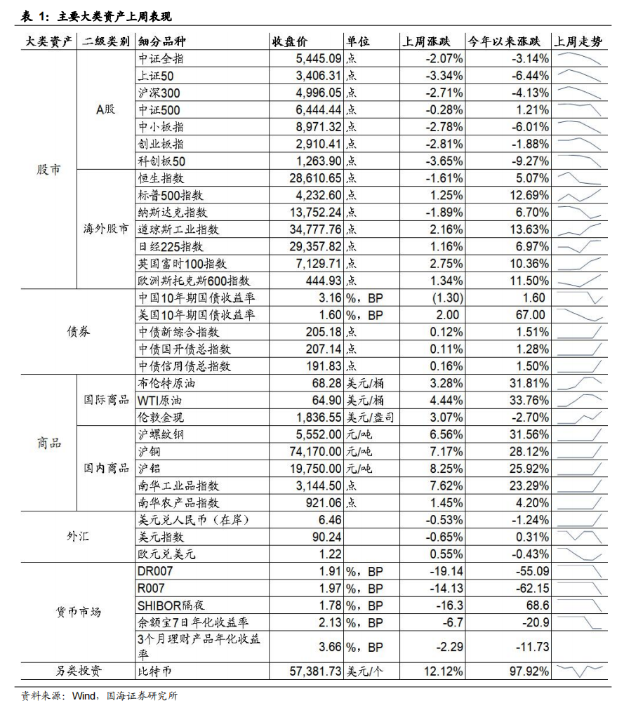 1、主要大类资产一周表现