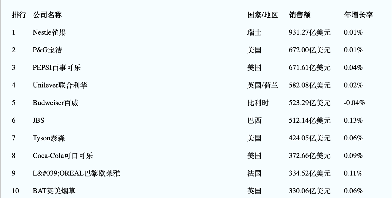 2021年初,欧晰析企业管理咨询公司发布了“全球50大快速消费品公司排行榜”,以全球范围内各快消品企业2019年度的销售收入为指标进行排序,最终评选出了全球50大快消品企业。而在这个排行榜中,排名靠前的消费品国际巨头们,不是已经宣布涨价,就是在涨价的路上。