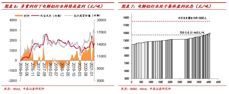 谢鸿鹤:碳达峰和碳中和这一国策对有色行业的影响是长远的。虽然没有钢铁行业碳排放占比大,但有色行业也是典型的高耗能、高排放,尤其是电解铝。通过对电解铝产能的控制,包括严格实施4500万吨电解铝产能红线、“双控“要求下新建产能投建放缓等,电解铝行业最终将迈入“持续高盈利”时代。