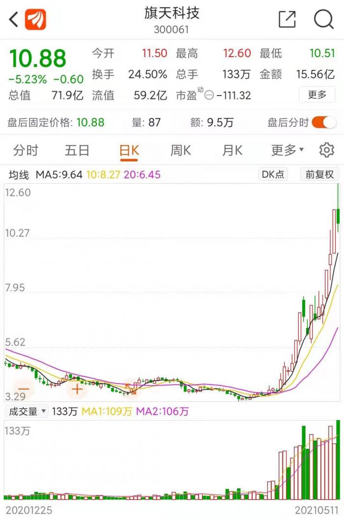 累计涨幅239.64%!旗天科技近期涨幅严重异常:中小投资者累计买入56.54亿元,占比近七成