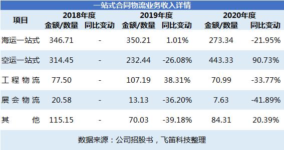 在数据中,我们可以发现,2020年一站式合同物流业务收入获得增长的原因是由于空运一站式业务收入获得大幅度增加,其余业务均有不同幅度的下滑。空运一站式业务收入增加是因为在2020年由于疫情的影响,空运市场运力紧张且舱位供不应求,空运运价出现大幅上涨所导致的,根据招股书的描述,空运一站式单价同比增长超过 105.45%。