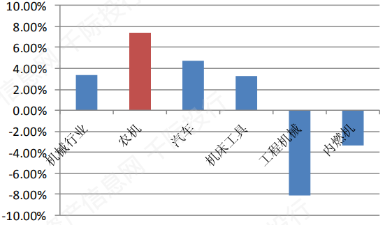 图 农机行业主营收入增幅优于整体机械行业及部分子行业