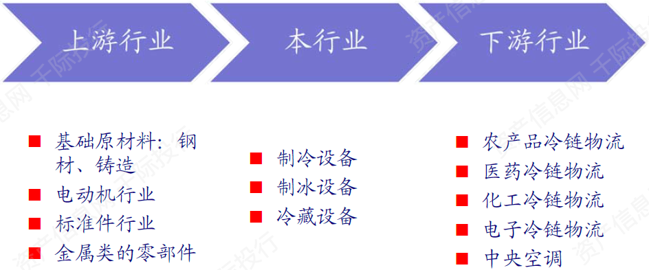 制冷设备上游行业为基础原材料的制造、电动机、标准件以及金属类零部件。下游行业为冷链物流以及中央空调。