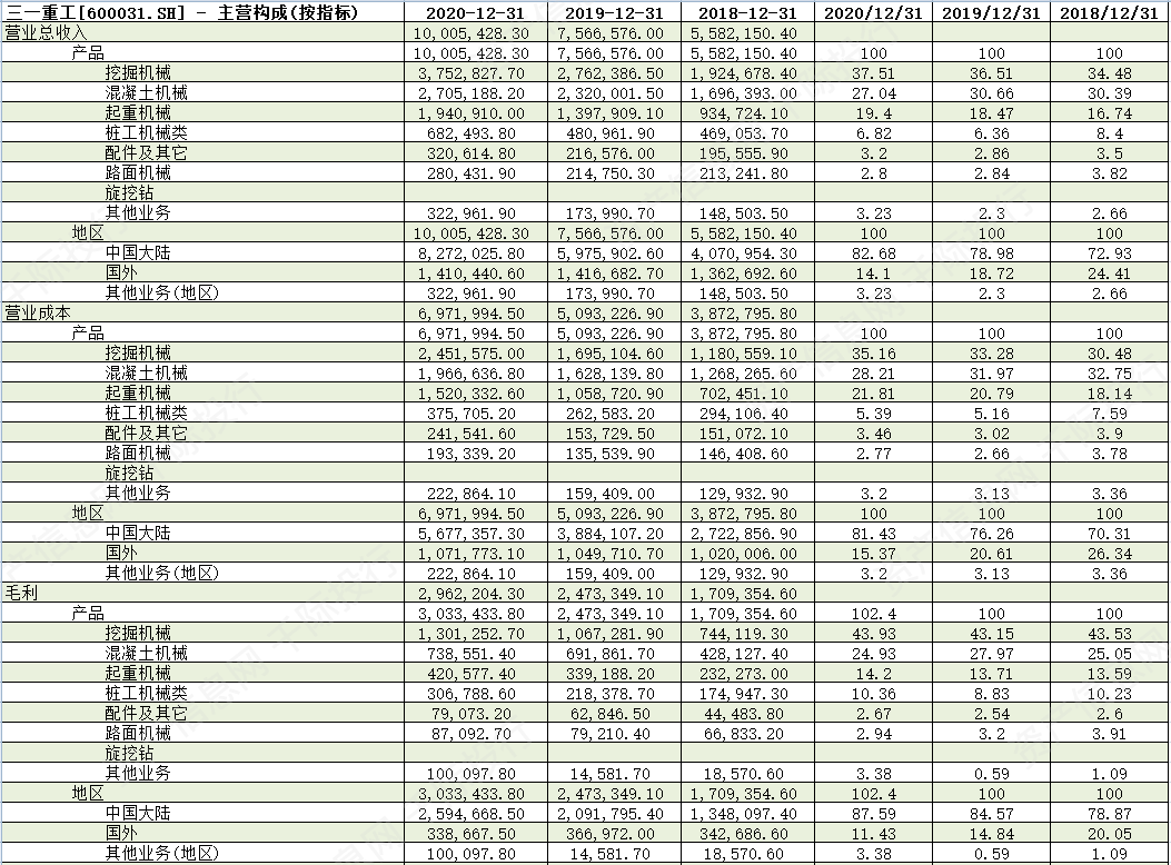 (1) 三一重工[600031.SH] 是全球装备制造业领先企业之一。公司产品包括混凝土机械、挖掘机械、起重机械、桩工机械、筑路机械、建筑装配式预制结构构件。公司拥有ISO9000质量体系认证、ISO14001环境管理体系认证、GB/T28001职业健康安全管理体系认证和中国CCC认证、美国UL认证、德国TUV认证、欧盟CE认证等国际认证。公司凭借技术创新实力,先后三次荣获“国家科技进步奖”,两次荣获“国家技术发明奖”。