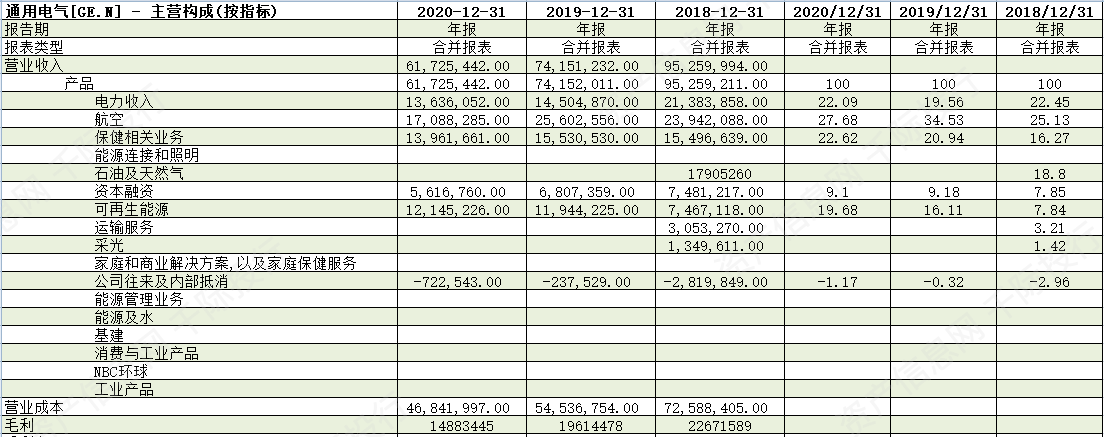 (2) 通用电气[GE.N]是一家多元化的科技、媒体和金融服务公司。该公司的产品和服务范围广阔,从飞机发动机、发电设备、水处理与安全技术,到医疗成像、商业和消费金融、媒体内容和工业产品。公司涉足六大业务领域:基础设施、商务金融、消费者金融、医疗、媒体娱乐与工业。目前,公司业务遍及世界上100多个国家。