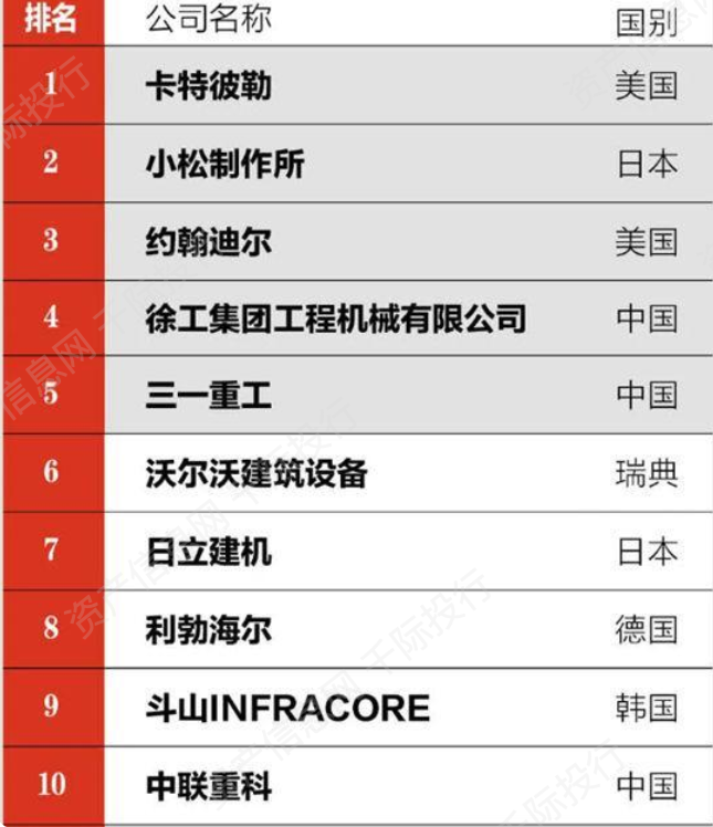 2020年全球工程机械制造商50强中,卡特彼勒、小松稳居全球第一、第二位。