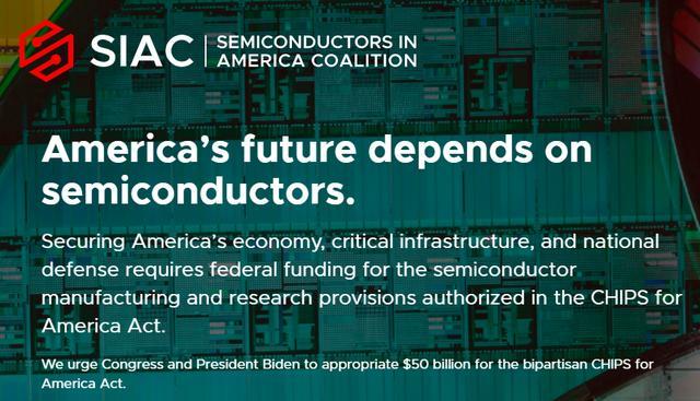 美国半导体联盟在官网发布的新闻稿中表示,“美国半导体联盟——一个由半导体公司和一系列重要行业的主要下游半导体用户组成的跨行业联盟今天宣布成立,我们呼吁国会领导人拨出500亿美元用于国内芯片制造激励和研究计划。SIAC的使命是推动促进美国半导体制造和研究的联邦政策,以加强美国的经济、国家安全和关键基础设施。”