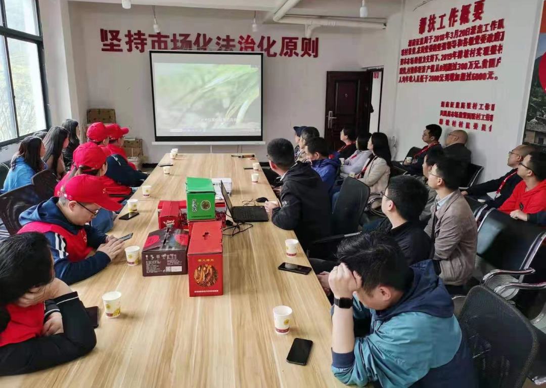 当我们抵达樟坡村,湖南证监局樟坡村扶贫工作组组长邱孝处长便带领工作组的其他同事们及村民朋友对我们进行了热烈的迎接,在樟坡村产业综合楼针对樟坡村三年以来的变化给我们来访的券商同事们进行了详细的讲解。2018年3月,为贯彻落实党中央、中国证监会党委和湖南省委省政府关于脱贫攻坚的战略部署,坚决打好打赢全面脱贫攻坚战,湖南证监局派出工作队到樟坡村开展驻村扶贫工作。三年前的樟坡村缺水、缺电、缺地,面对艰巨的脱贫任务,在湖南局党委领导下,工作队制定了“三年两步走”的扶贫计划,结合实际情况借鉴成熟企业的考核管理体系,对村民、党员、产业带头人,村干部进行KPI考核,在三年的时间里,樟坡村发生翻天覆地的变化,从“五零”村变成了“五兴”村,也实现了三个“千亩计划”,即千亩茶园、千亩罗汉果,千亩辣椒种植基地。