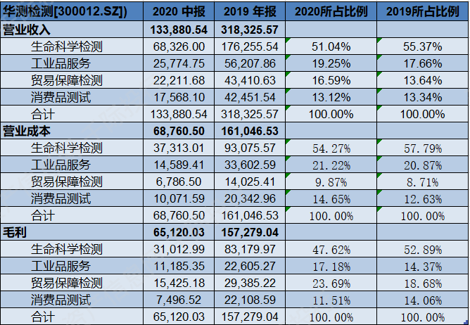 表 以华测检测为例分析主营结构