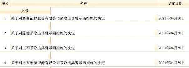 对此,重庆证监局决定对浙商证券、申万宏源证券、陈健、王军分别采取出具警示函的行政监管措施。