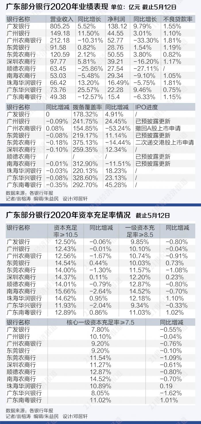 值得注意的是,上述12家A股排队IPO的银行中,包括广州银行、东莞银行、顺德农商行、南海农商行等4家广东银行。而作为金融大省的广东,目前尚无一家银行登陆A股。