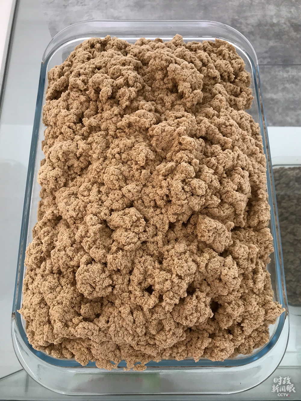 △这是车间里30:1的艾绒,表示30斤艾叶出1斤艾绒,前面的数字越大,制成的艾条纯度越高。(总台央视记者石伟明拍摄)