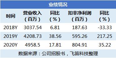 先来看公司的营收和净利润情况。由上面的图表可以看到,2018年至2020年,公司分别实现营业收入30.38亿元、42.08亿元、49.59亿元,2020年营收增速略有下降。扣非净利润分别为1.88亿元、5.95亿元和8.04亿元,净利润增速在2019年出现暴增,主要由营业收入增长带来。2020年,净利润增速降幅大,主要是2019年净利润暴增,同时2019年净利润基数变大导致2020年增速降低。
