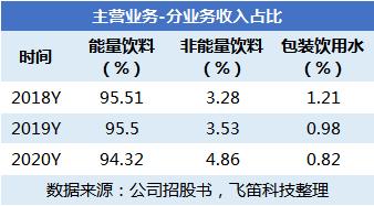 根据招股书引用的欧睿国际数据统计,一直以来,中国饮料市场以包装饮用水、即饮茶饮料和碳酸饮料为主,2019年三者占中国饮料销售额的比重分别为35%、21%、15%。经过多年的发展,果汁和能量饮料也已成为饮料行业的重要组成部分,2019年二者占中国饮料销售额的比重分别为16%、8%。