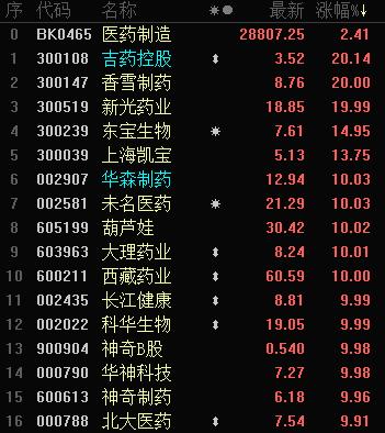 在弱势当中,市场要出现普涨是比较困难的,也因此中药的这个题材成了市场资金炒作的对象。板块中有多家个股都涨停了。吉药控股、香雪制药、新光药业更是大号20%涨停。