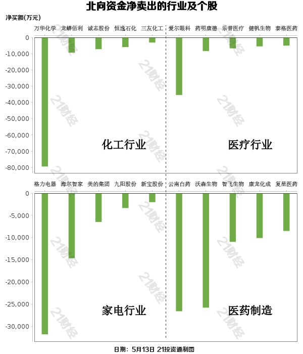 据21投资通(微信号ID:touzit21)智能监测,5月13日,北向资金净卖出56.4亿元,其中沪股通净卖出30.61亿元,深股通净卖出25.78亿元。北向资金单日净卖出额创近1个半月新高。
