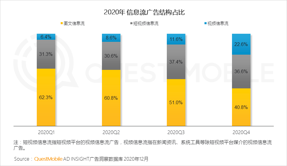 在互联网广告平台方面,短视频媒介持续增长,短视频信息流、开屏广告均出现大幅增长,短视频信息流占比36.6%,视频信息流占比22.6%,短视频在抢占广告的能力上进一步扩大优势,挤压图文信息流的市场份额。