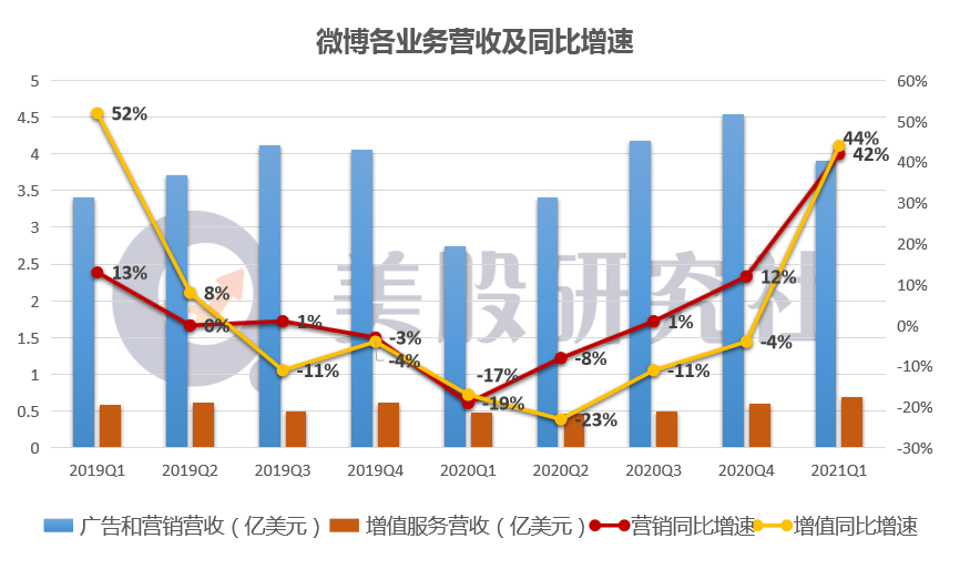 随着Facebook、Twitter、Snapchat、Pinterest纷纷发布财报后,国内社交平台微博也发布新一季度财报。财报显示,微博2021年Q1营收为4.59亿美元,同比增长42%,超过市场预期。