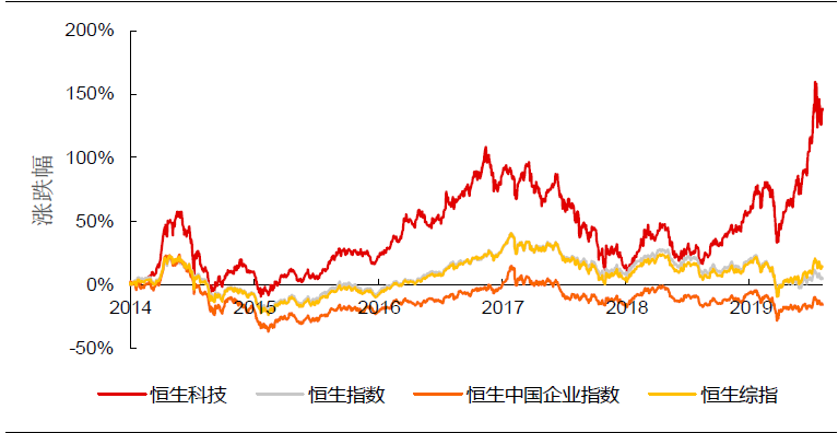 2020年7 月27日,恒生科技指数问世,追踪经筛选后最大30家于香港上市的科技企业。估值显著高于以金融、地产等低估值行业主导的恒生指数,长期回报能力显著,这是一个全新的定价体系。