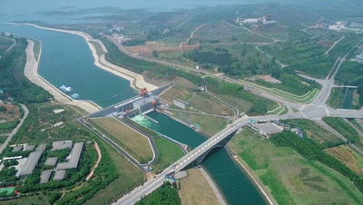 △俯瞰陶岔渠首枢纽工程(总台央视记者段清臣拍摄)