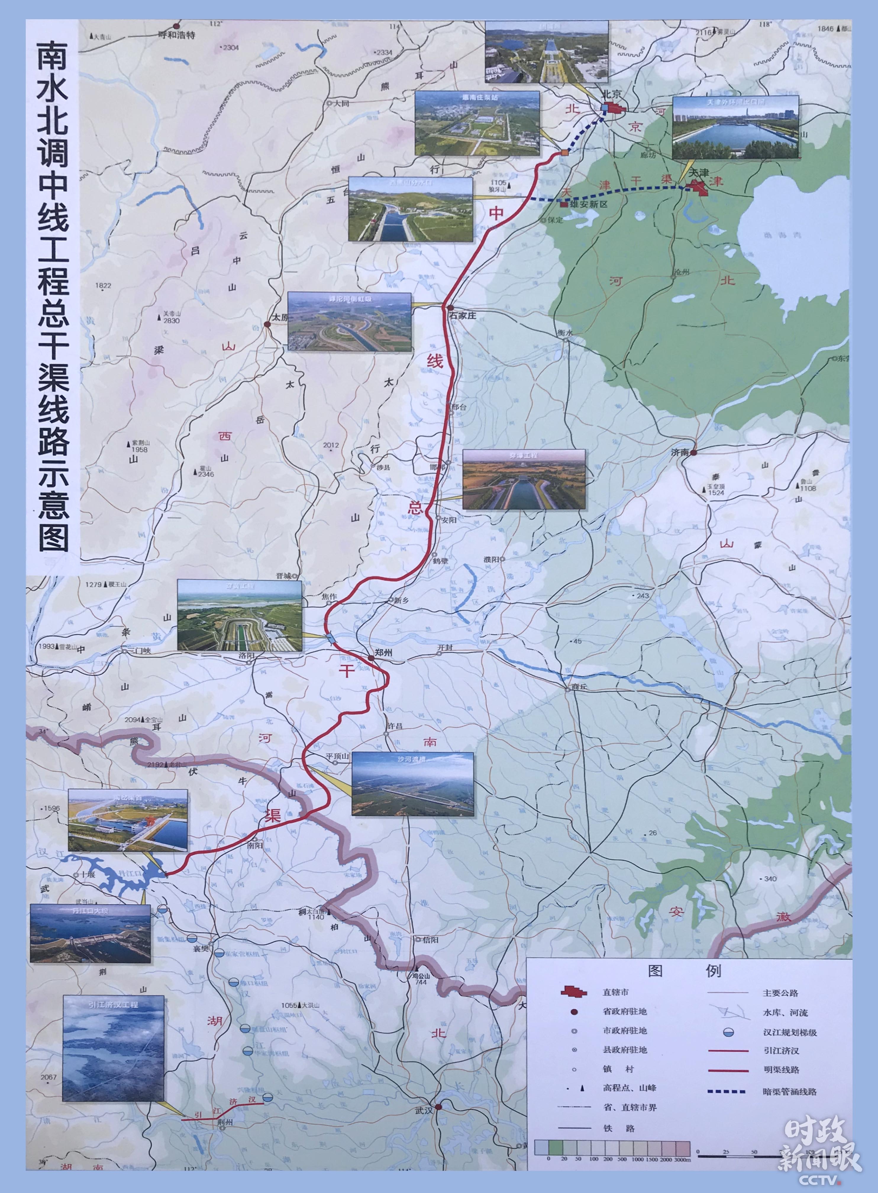 △南水北调中线工程总干渠路线图(总台央视记者石伟明拍摄)