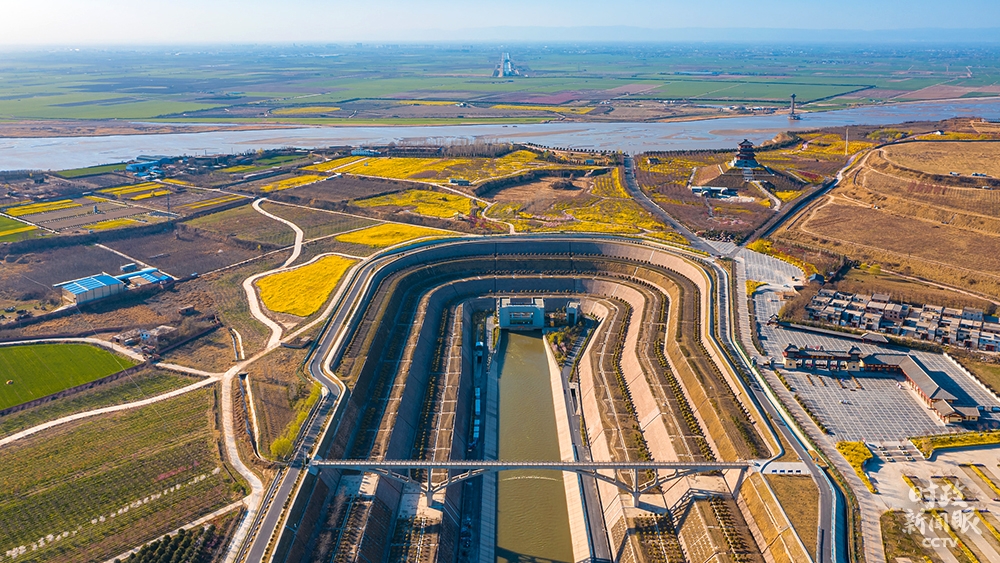 △陶岔渠首水利枢纽下游与南水北调中线干渠连接(总台央视记者高琳拍摄)