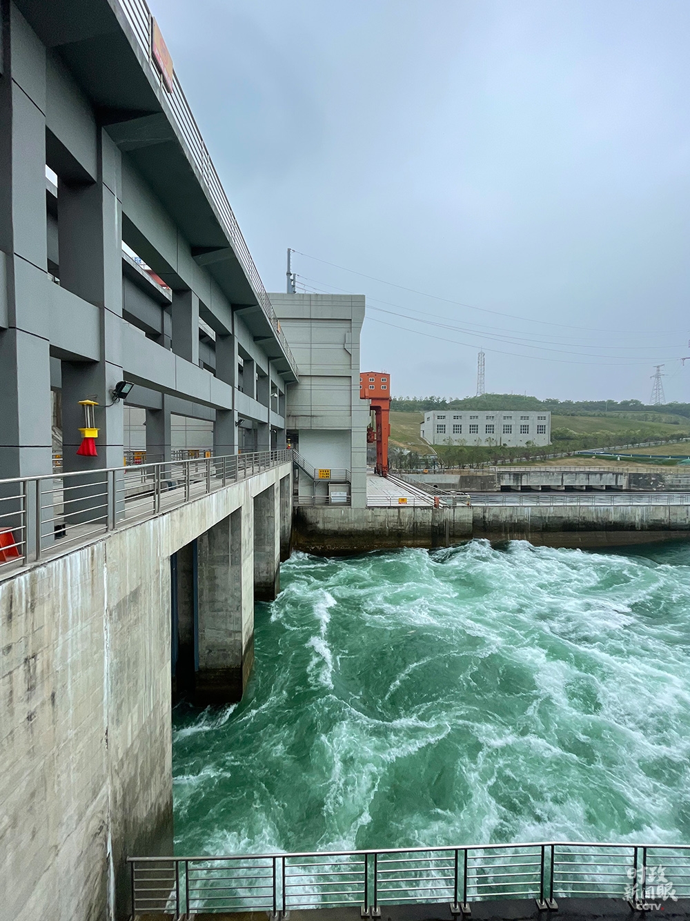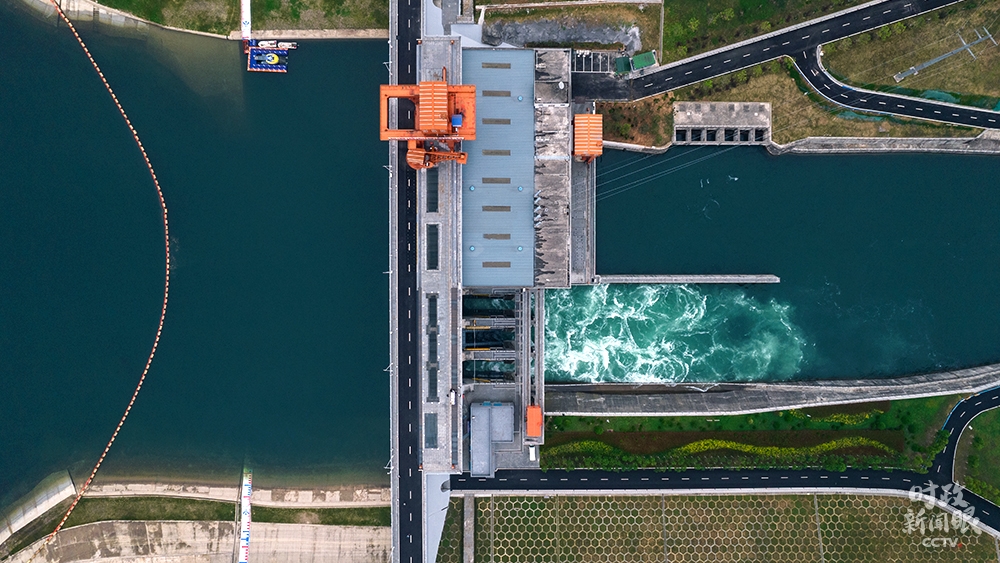 △陶岔渠首水利枢纽工程大坝长265米,引水闸分3孔、闸总宽31米。(总台国广记者李晋拍摄)