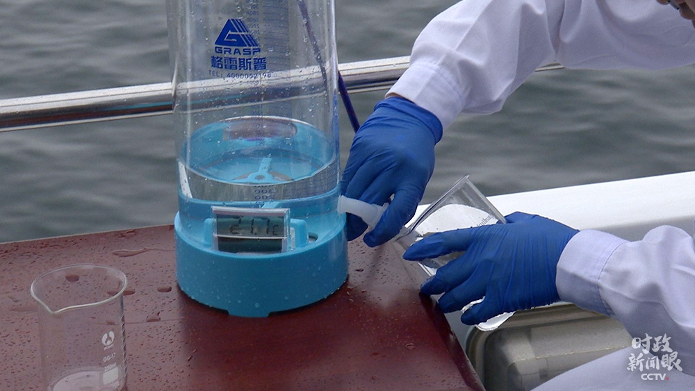 △这是考察当天,现场从丹江口水库取出的水样。(总台央视记者李铮拍摄)