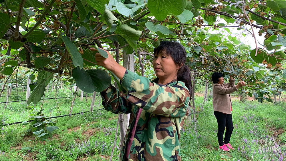 △村民正在为猕猴桃疏果。(总台央视记者段德文、卢心雨拍摄)