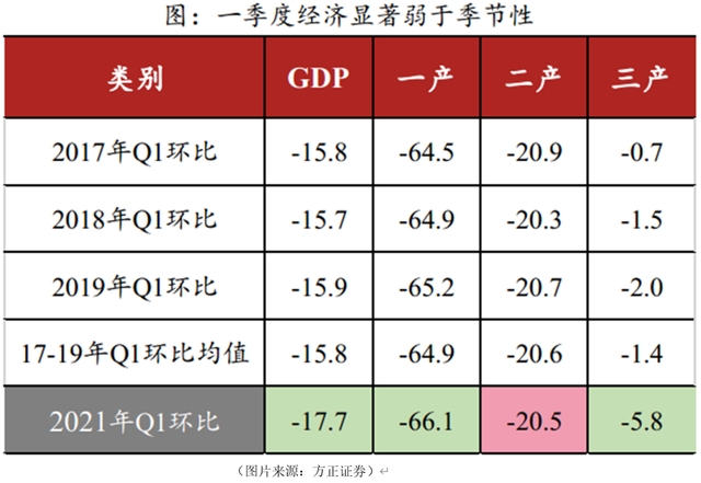 方正证券认为2021年一季度经济数据偏弱的三点原因: