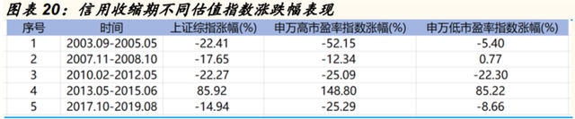 (2)信用收缩背景下,高估值标的下行压力更大